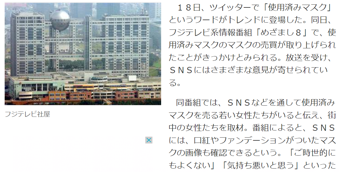 Twitter上で存在する唾液つきマスクを欲しがるやりとりとかもマジで病気です。